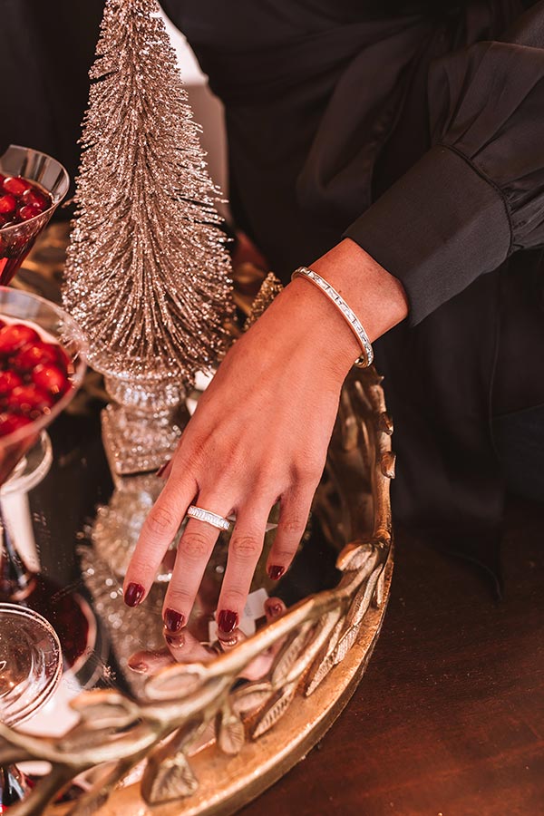 Whether you stack it or let it stand alone, the 'Gold Band Ring in White Crystal' is made for the spotlight, defined by its baguette crystals with high shine! Metal: Gold Plated Over Brass Material: White Crystal Size: 0.23"W